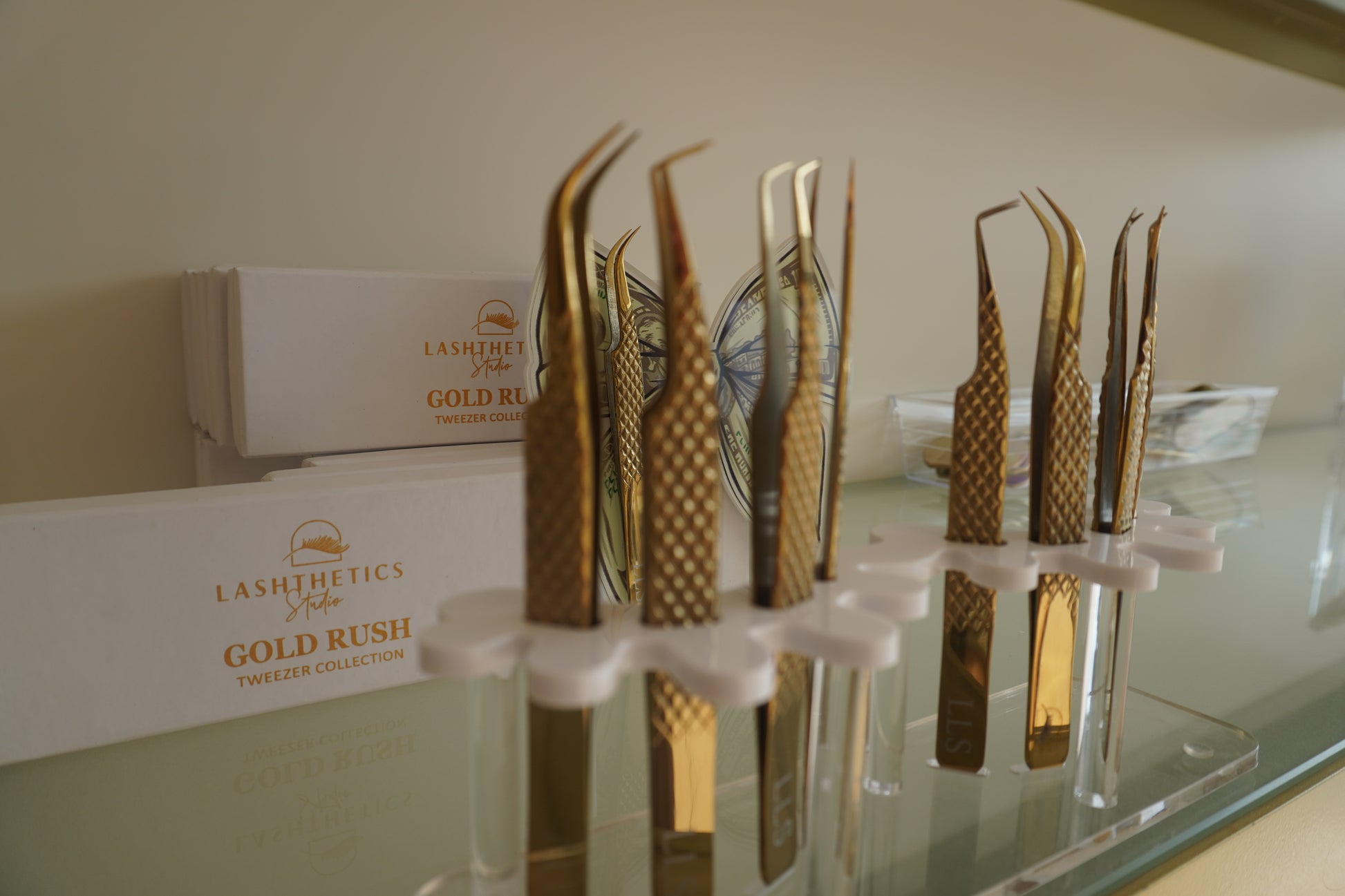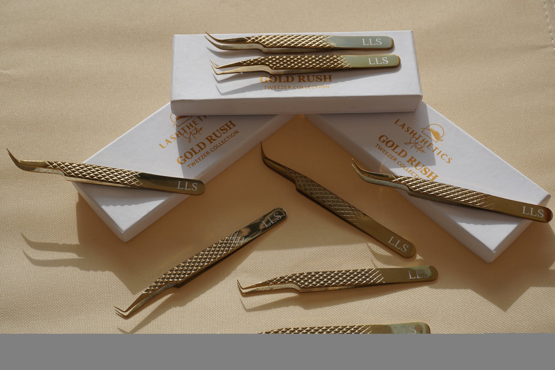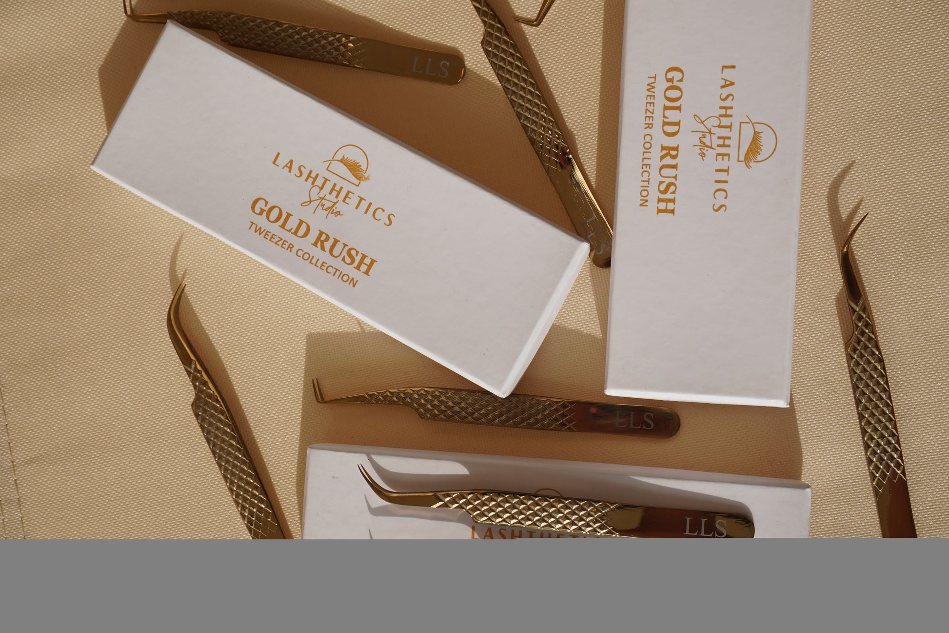 Both tweezers are handcrafted with premium gold-coated stainless steel for durability, style, and a touch of luxury. Whether you’re crafting mega volume or delicate 3D fans, the Gold Rush Collection delivers high performance and unmatched consistency.